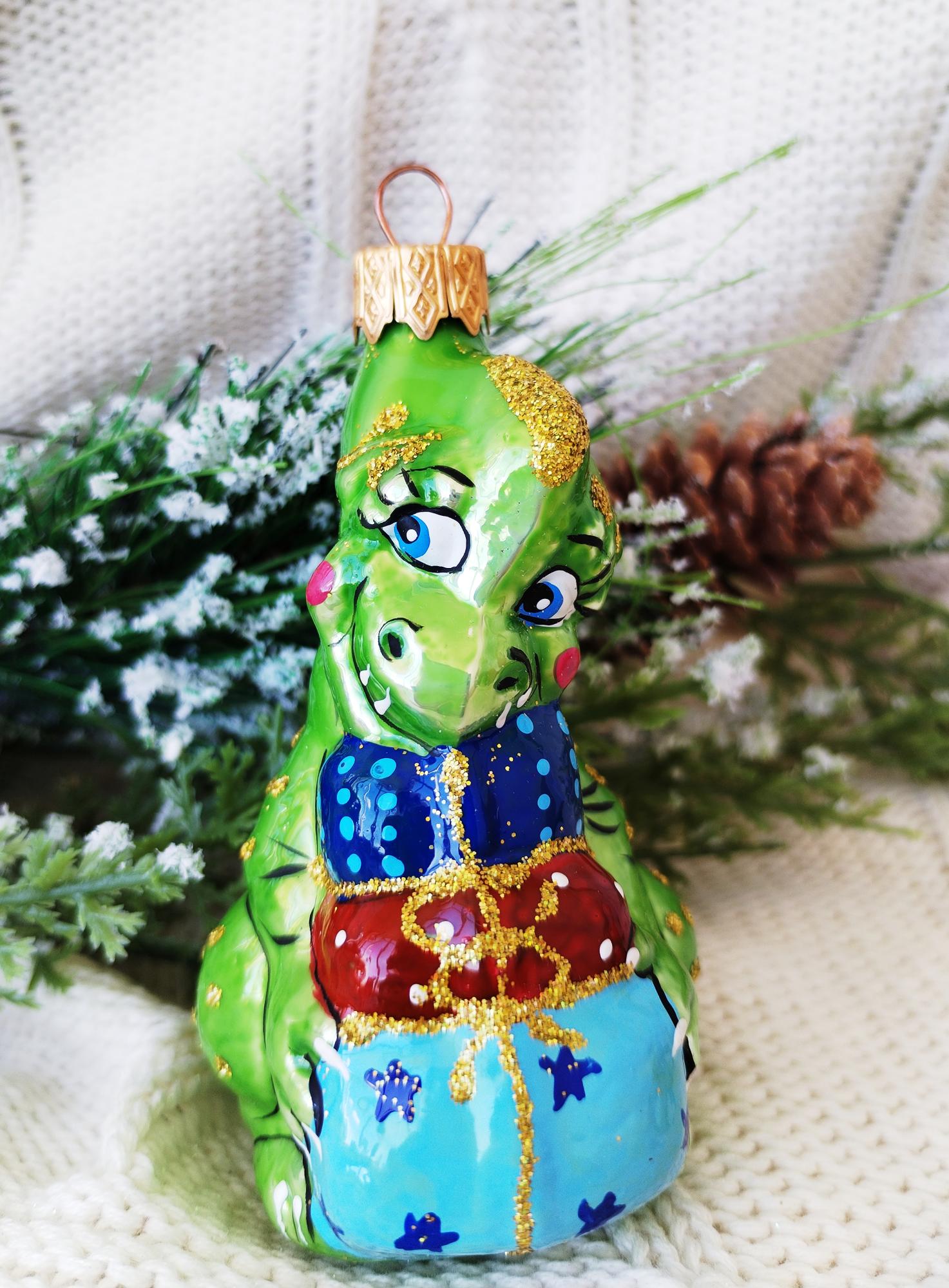 Елочная новогодняя игрушка КОЛОМЕЕВ, Дракон с подарками, высота 9 см.
