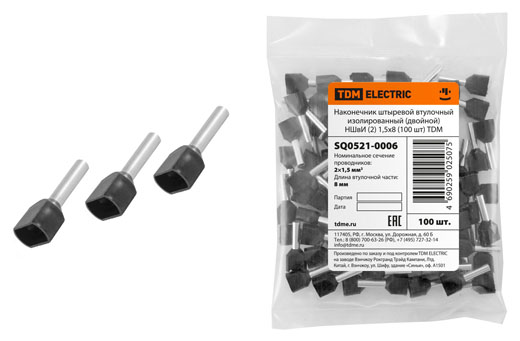 Наконечник штыревой втулочный изолированный (двойной) НШвИ (2) 1,5х8 (100 шт) TDM в Санкт-Петербурге