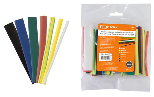 Термоусаживаемая трубка ТУТнг 4/2, 6/3, 8/4, 10/5, 12/6 набор (7 цветов по 1 шт. 100мм) TDM в Санкт-Петербурге