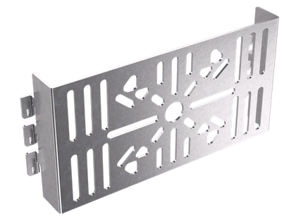 В систему лестничных лотков "L5 Combitech" входит ряд аксессуаров, делающих монтаж быстрее, проще и безопаснее. Вертикальная монтажная пластина предназначена для быстрого монтажа ответвительных коробок ДКС серии "Express". При разработки перфорации на пластинах во внимание были приняты именно монтажные отверстия на этих ответвительных коробках. Монтажную пластину размещают на траверсах лотка и фиксируют гайками М6 и и винтами М6х10. Аксессуар изготовлен в исполнении "Цинк-ламельное покрытие" - это прочный защитный слой из магниевой смолы, хлопьев цинка и алюминия. Он обеспечивает электрохимическую и барьерную защиту от коррозии. Коррозионная стойкость цинк-ламельных аксессуаров сравнима с характеристиками изделий в исполнении "Горячий цинк".