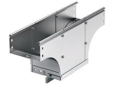 При построении кабельной трассы чаще всего требуется организовать ее изгибы и ответвления в горизонтальной и/или вертикальной плоскости. Для этого в системе "S5 Combitech" применяются аксессуары. Крышка-ответвитель TSS используется, если нужно организовать сложное ответвление кабельной трассы. Она имеет Т-образную форму. При ответвлении обеспечивается плавный изгиб, что предохраняет кабель от повреждения. Исполнение аксессуара – "сталь, оцинкованная по методу Сендзимира". Ширина лотка в горизонтальном направлении – 500 мм, в вертикальном – 500 мм, высота боковой стенки – 80 мм. Применение комплектных аксессуаров облегчает расчет числа необходимых элементов для монтажа – в комплект уже входят соединительные пластины и детали крепежа.