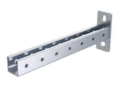 Монтажные элементы серии "B5 Combitech" совместимы с металлическими лотками и аксессуарами ДКС любой серии, а также с шинопроводами (как осветительными, так и магистральными). Элементы системы легко комбинируются друг с другом, что позволяет создавать конструкции любой сложности и строить даже проекты нестандартных размеров. При этом применяются соединения болтового типа - для крепления элементов не требуется использование сварки. Специальное исполнение "Горячий цинк" обеспечивает изделиям устойчивость к коррозии и длительный срок службы. Легкая потолочная консоль предназначена для организации кабельных трасс с небольшой нагрузкой. Она применяется для крепления к стене. Аксессуар изготавливается из стали толщиной 2,5 мм, он совместим с лотками шириной 100 мм и расчитан на нагрузку до 280 кг.