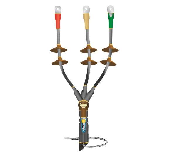 МУФТА КОНЦЕВАЯ ТЕРМОУСАЖИВАЕМАЯ МАРКИ 10КНТпН-3х(150-240) С НАКОНЕЧНИКАМИ БОЛТОВЫМИ НАРУЖНОЙ УСТАНОВКИ предназначена для оконцевания 3-х жильных силовых кабелей сечением 150, 185, 240 кв.мм с бумажной пропитанной изоляцией на напряжение до 10 кВ включительно. Устанавливается на открытом воздухе при температуре окружающей среды от -50град.С до +50град.С и относительной влажности до 98%, в том числе в качестве мачтовой. Соответствует требованиям ГОСТ 13781.0-86 и ТУ Нева-Транс 3599-012-31930690-2016. Прошла необходимый комплекс независимых испытаний, на основании которых выдан сертификат соответствия Госстандарта России. Монтируется на разделке кабеля методом термоусаживания основных деталей из модифицированного полимера, входящих в комплект муфты, с помощью горелки или высокотемпературного фена. Оснащена жильными изоляторами, создающими на поверхности сухие зоны и увеличивающими длину путей токов утечки. Обеспечивает выравнивание напряженности электрического поля и герметизацию корешка разделки кабеля за счет применения специального герметика-регулятора. Предусматривает крепление провода заземления к металлической оболочке с помощью пружины постоянного давления и терки, что позволяет исключить возможность повреждения бумажной изоляции в случае применения припоя “А”, а к бронелентам методом пайки. Имеет высокую эксплуатационную надежность и экологическую безопасность. Устойчива к ультрафиолетовому излучению и воздействию атмосферных осадков.