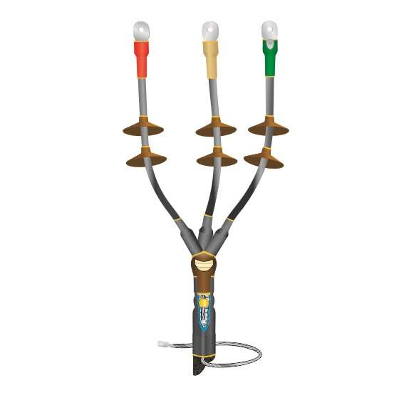 МУФТА КОНЦЕВАЯ ТЕРМОУСАЖИВАЕМАЯ МАРКИ 10КНТпН-3х(70-120) С НАКОНЕЧНИКАМИ БОЛТОВЫМИ НАРУЖНОЙ УСТАНОВКИ предназначена для оконцевания 3-х жильных силовых кабелей сечением 70, 95, 120 кв.мм с бумажной пропитанной изоляцией на напряжение до 10 кВ включительно. Устанавливается на открытом воздухе при температуре окружающей среды от -50град.С до +50град.С и относительной влажности до 98%, в том числе в качестве мачтовой. Соответствует требованиям ГОСТ 13781.0-86 и ТУ Нева-Транс 3599-012-31930690-2016. Прошла необходимый комплекс независимых испытаний, на основании которых выдан сертификат соответствия Госстандарта России. Монтируется на разделке кабеля методом термоусаживания основных деталей из модифицированного полимера, входящих в комплект муфты, с помощью горелки или высокотемпературного фена. Оснащена жильными изоляторами, создающими на поверхности сухие зоны и увеличивающими длину путей токов утечки. Обеспечивает выравнивание напряженности электрического поля и герметизацию корешка разделки кабеля за счет применения специального герметика-регулятора. Предусматривает крепление провода заземления к металлической оболочке с помощью пружины постоянного давления и терки, что позволяет исключить возможность повреждения бумажной изоляции в случае применения припоя “А”, а к бронелентам методом пайки. Имеет высокую эксплуатационную надежность и экологическую безопасность. Устойчива к ультрафиолетовому излучению и воздействию атмосферных осадков.