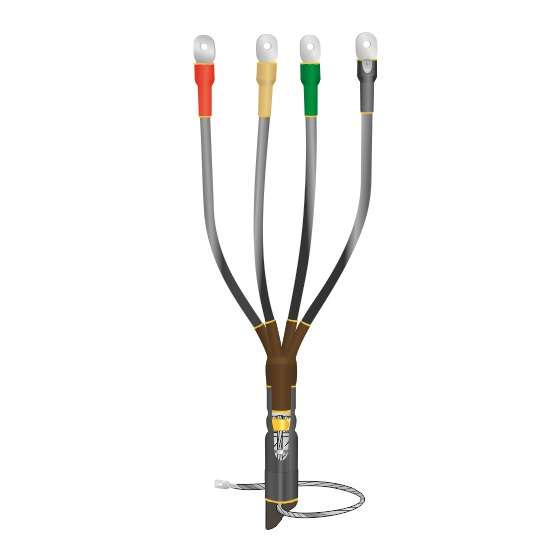 МУФТА КОНЦЕВАЯ ТЕРМОУСАЖИВАЕМАЯ МАРКИ 1КВТпН-4х(150-240) С НАКОНЕЧНИКАМИ БОЛТОВЫМИ ВНУТРЕННЕЙ УСТАНОВКИ предназначена для оконцевания 4-х жильных силовых кабелей сечением 150, 185, 240 кв.мм с бумажной или с пластмассовой изоляцией, с броней или без брони, на напряжение до 1 кВ включительно. Универсальна в применении. Устанавливается внутри помещений всех категорий влажности. Соответствует требованиям ГОСТ 13781.0-86 и ТУ Нева-Транс 3599-012-31930690-2016. Прошла необходимый комплекс независимых испытаний, на основании которых выдан сертификат соответствия Госстандарта России. Монтируется на разделке кабеля методом термоусаживания основных деталей из модифицированного полимера, входящих в комплект муфты, с помощью горелки или высокотемпературного фена. Предусматривает крепление провода заземления к металлической оболочке кабеля, имеющего бумажную изоляцию, с помощью пружины постоянного давления и терки, а к бронелентам методом пайки. Сочетает в себе высокую эксплуатационную надежность и экологическую безопасность.