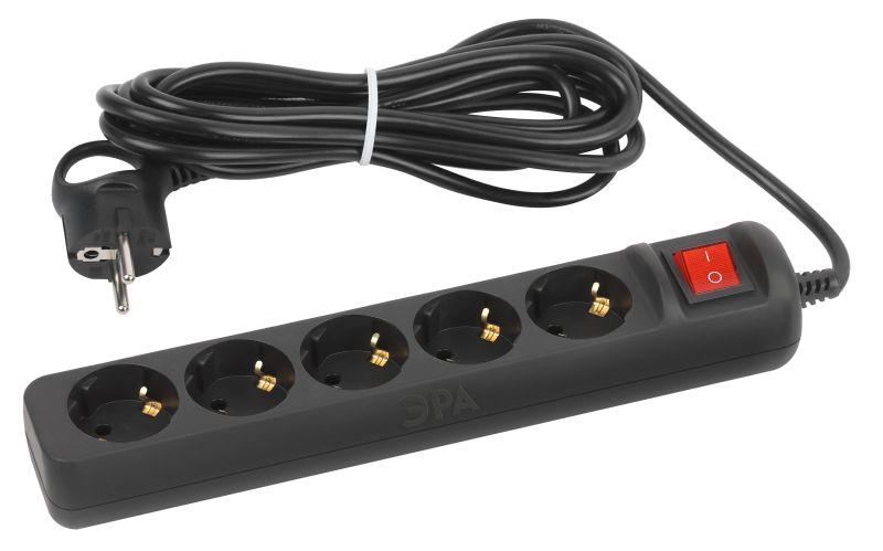 Удлинитель электрический UX-5es-5m-B с заземлением с выключателем 5 розеток 5м ПВС 3х0.75мм2 10А черн. Эра Б0057732 в Санкт-Петербурге