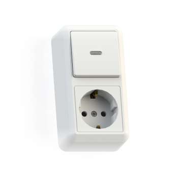 Блок комбинированный ОП БКВР-432 Оптима (1-кл. выкл. с подсветкой + розетка с заземл.) бел. Кунцево 8065 в Санкт-Петербурге