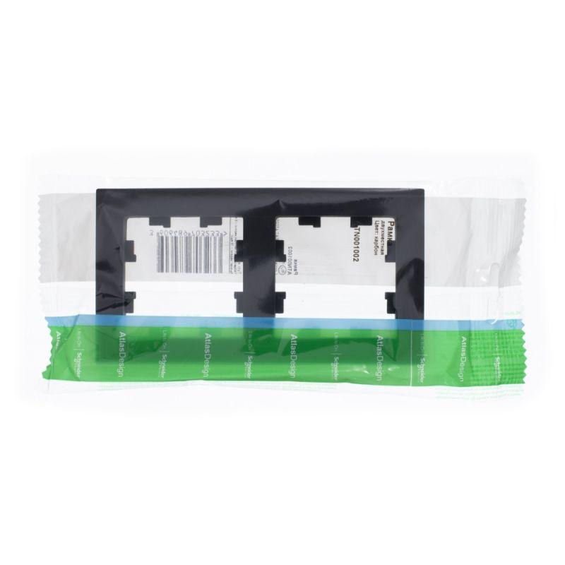 Рамка AtlasDesign (цвет карбон) двухместная. - Устанавливается в вертикальном и горизонтальном положениях. - Лицевые детали из качественного ABS-пластика, устойчивого к царапинам и УФ-излучению. - Позволяет гармонично вписать электроустановочное изделие в интерьер помещения. - Благодаря покрытию «soft touch» к изделию приятно прикасаться.