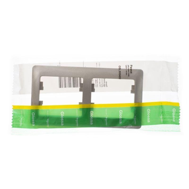 Рамка Glossa (цвет титан) двухместная. - Устанавливается в вертикальном положении. - Выполнена из материала PС+ASA, стойкого к УФ-излучению и появлению царапин. - Позволяет гармонично вписать электроустановочное изделие в интерьер помещения.