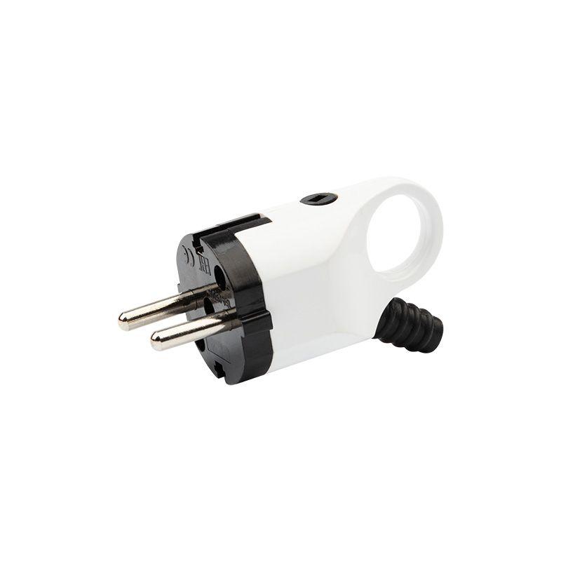 Вилка угловая 16А с заземл. евро стандарт с ушком (кольцом) бел./черн. Rexant 11-8952 в Санкт-Петербурге