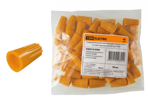 Соединительный изолирующий зажим СИЗ-3 5,5 мм2 оранжевый (50 шт) TDM в Санкт-Петербурге